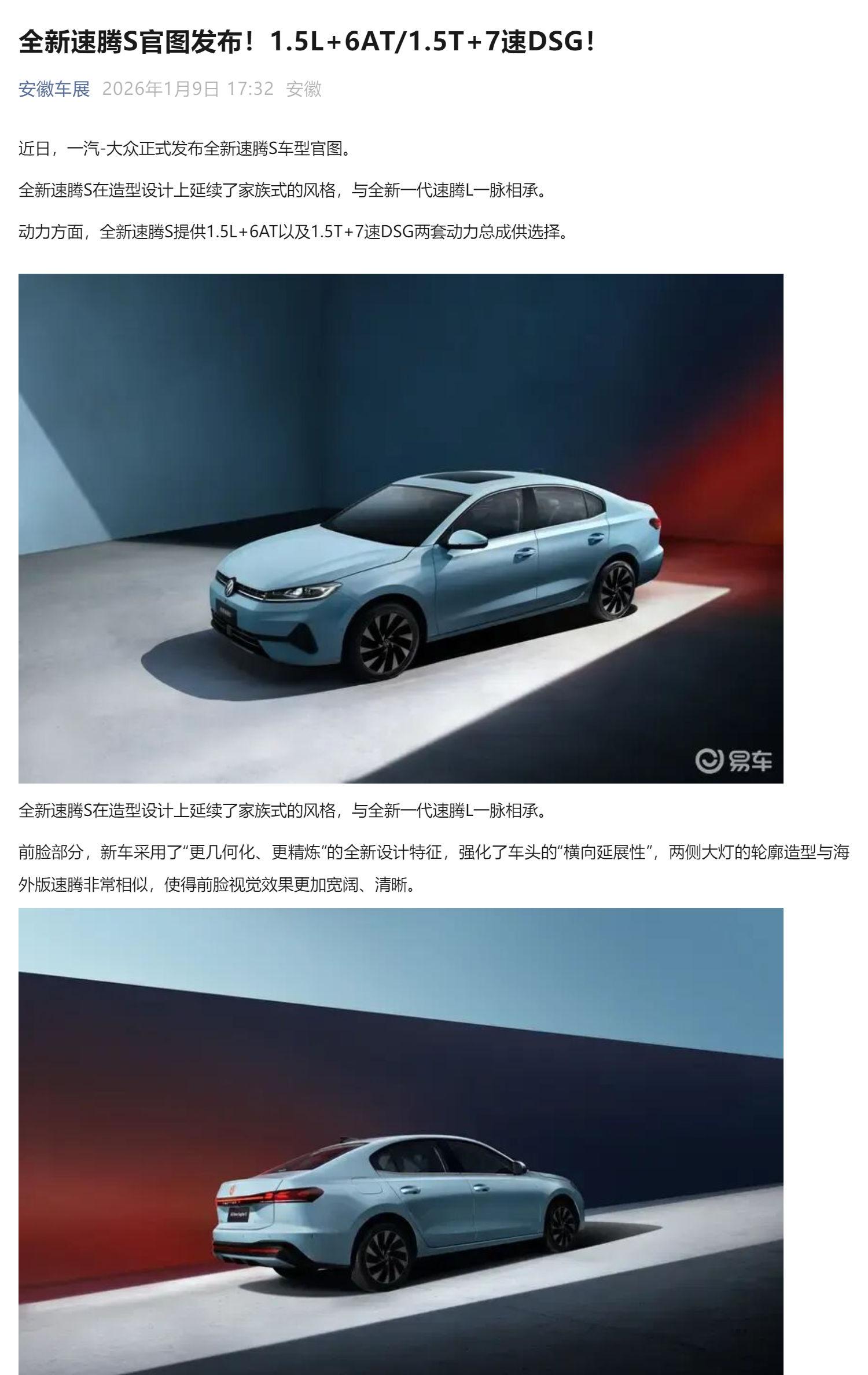 全新速腾S官图发布!1.5L+6AT/1.5T+7速DSG!
