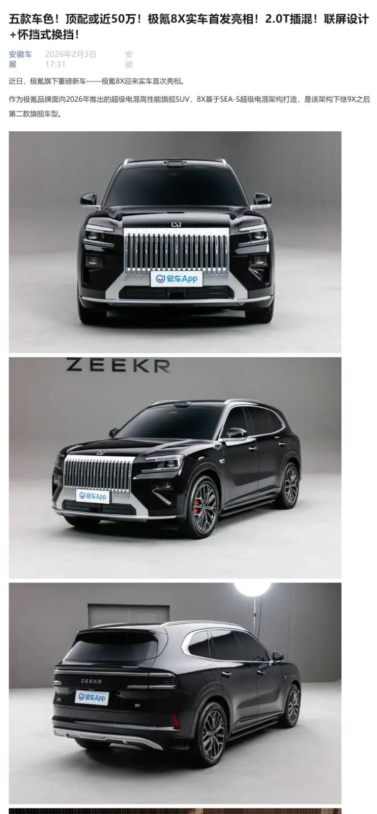 五款车色!顶配或近50万!极氪8X实车首发亮相!2.0T插混!联屏设计+怀挡式换挡!