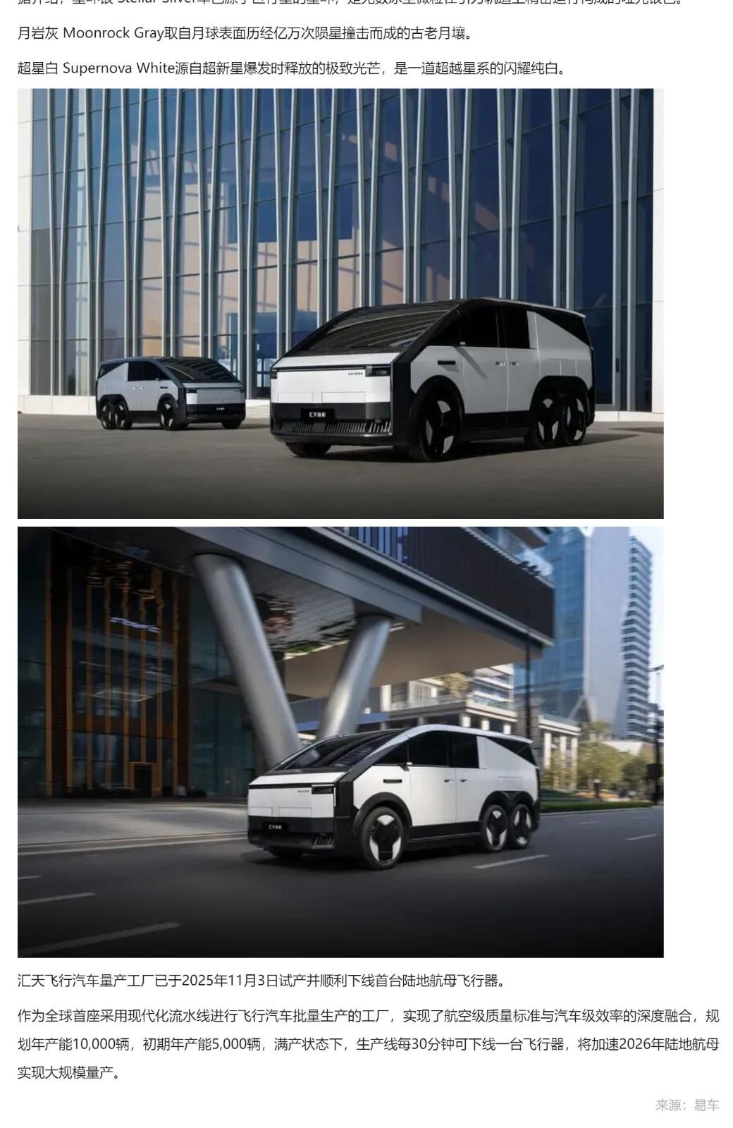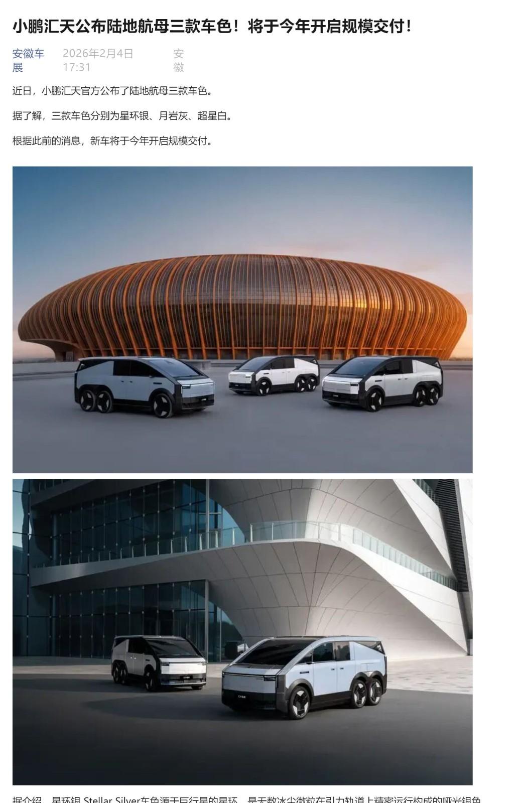 小鹏汇天公布陆地航母三款车色!将于今年开启规模交付!