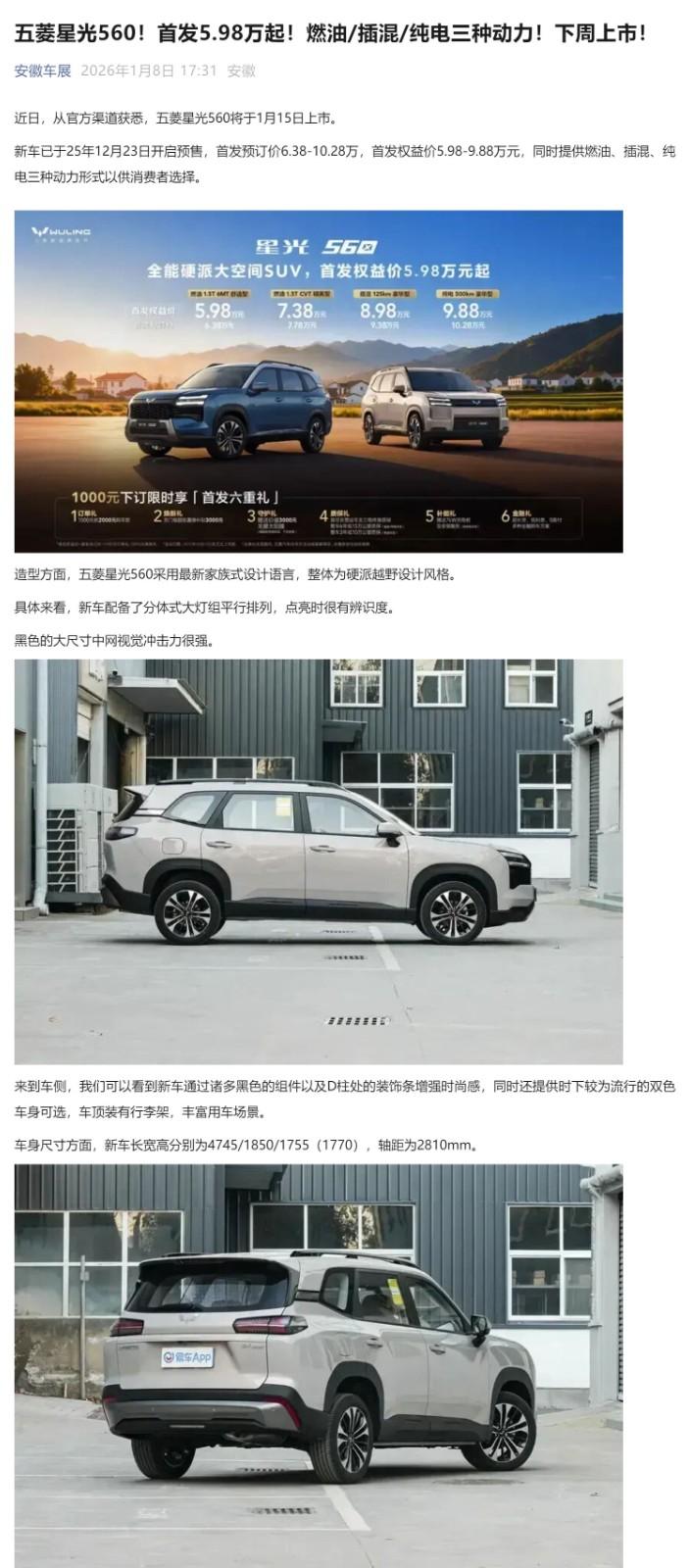 五菱星光560!首发5.98万起!燃油/插混/纯电三种动力!下周上市!