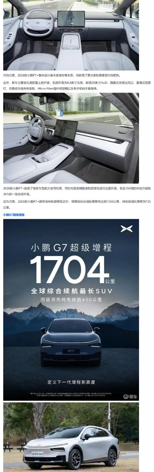 2026款小鹏P7+/小鹏G7超级增程!搭小鹏第二代VLA+图灵AI芯片!下周上市!
